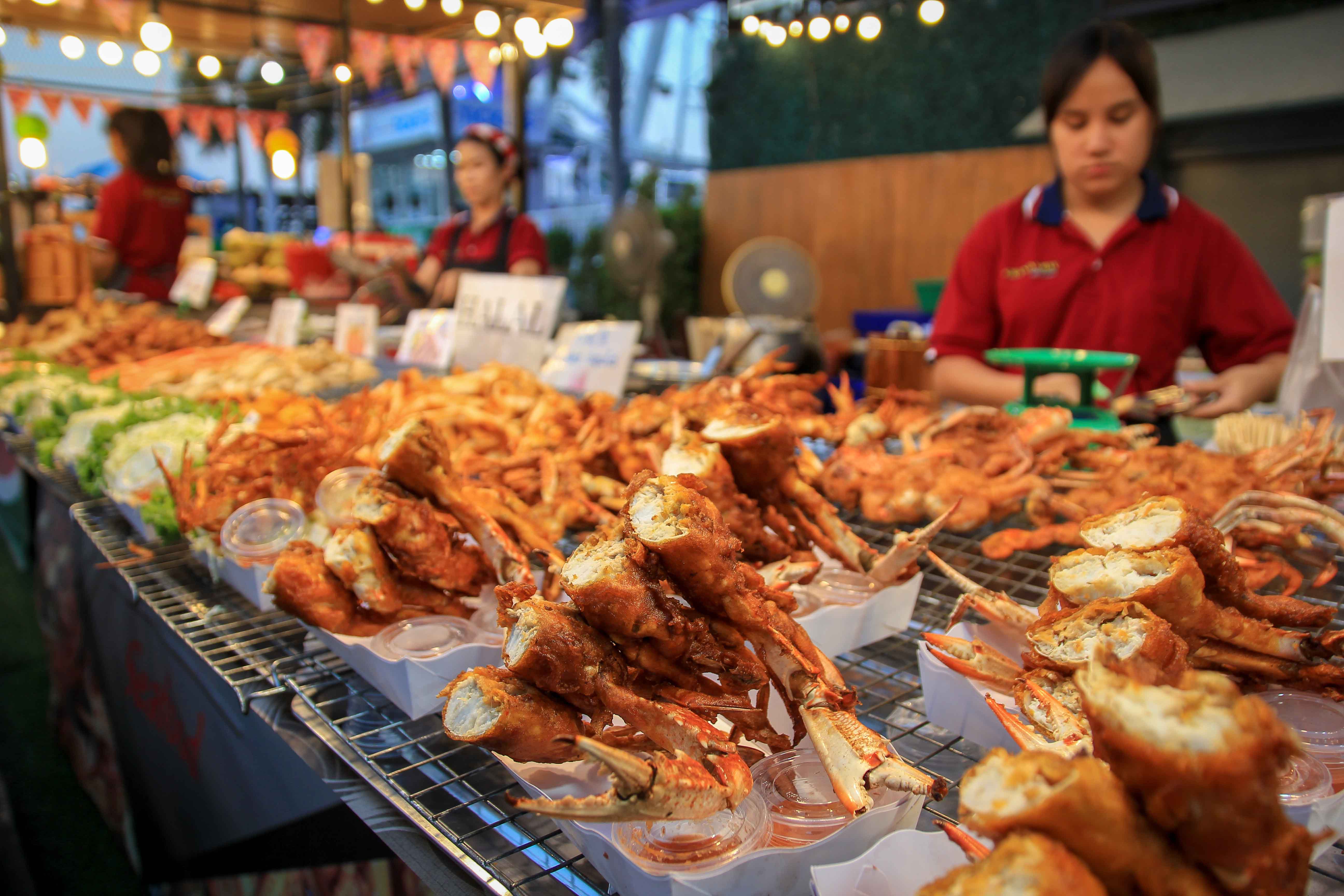 Bangkok S Biggest Street Food Attraction Central World Stalls And Some Great Roasted Fish ราชประสงค ไทยฟ ด