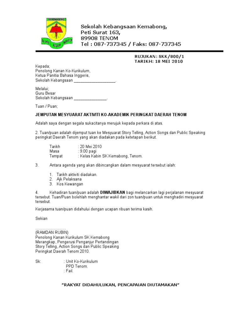 The collection that consisting of chosen picture and the best. Contoh Minit Mesyuarat Rasmi Downlllll. Surat Panggilan Mesyuarat Kurikulum Bil 2 2015.